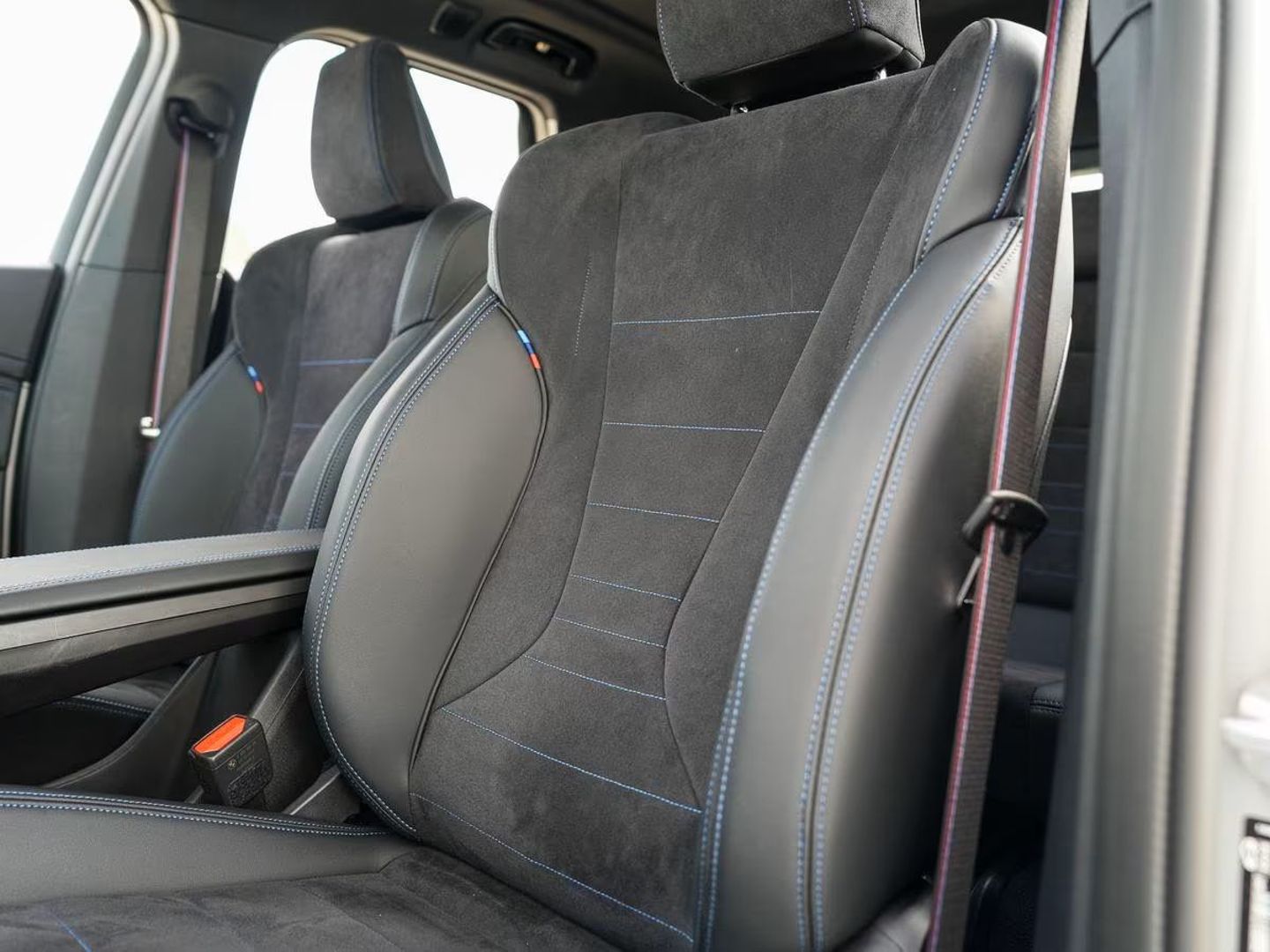 Sellerie alcantara / similicuir sensatec noir avec surpiqures bleues