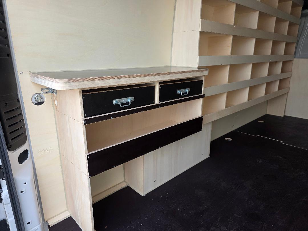 4000 e d options dont le tres beaux habillage bois jusqu'au plafond avec etabli et nombreux casiers