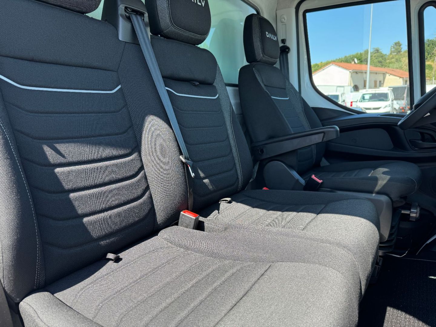 • Banquette passager biplace avec ceinture 3 points + tablette rabattable