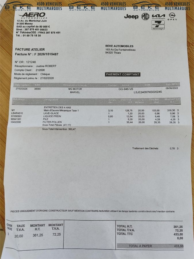 CONSTRUCTEUR MG 7 ANS - Durée : 38 mois : Garantie Constructeur MG