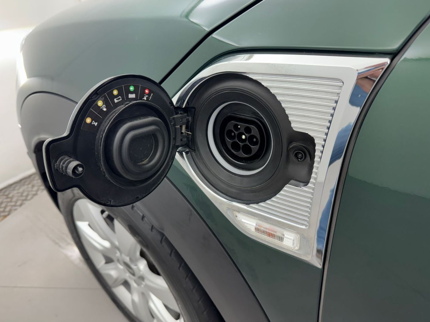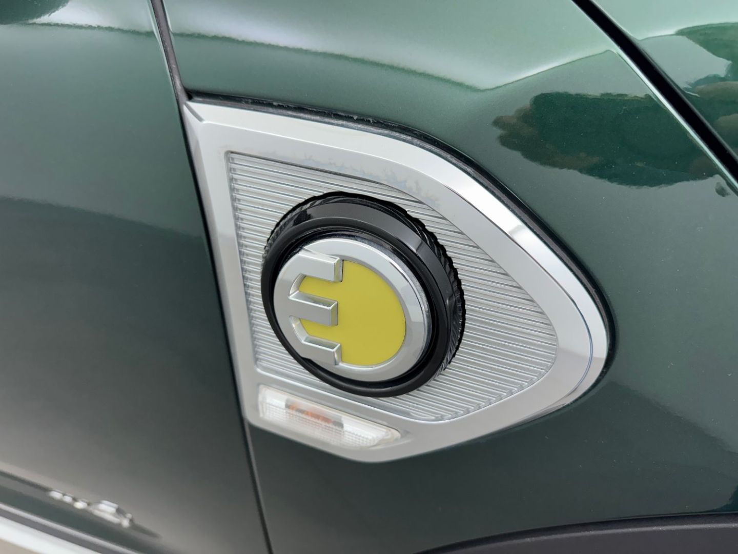Sidescuttle chromee avec logo mini "e" cote gauche avec couvercle rabattable et acces a la prise de de charge