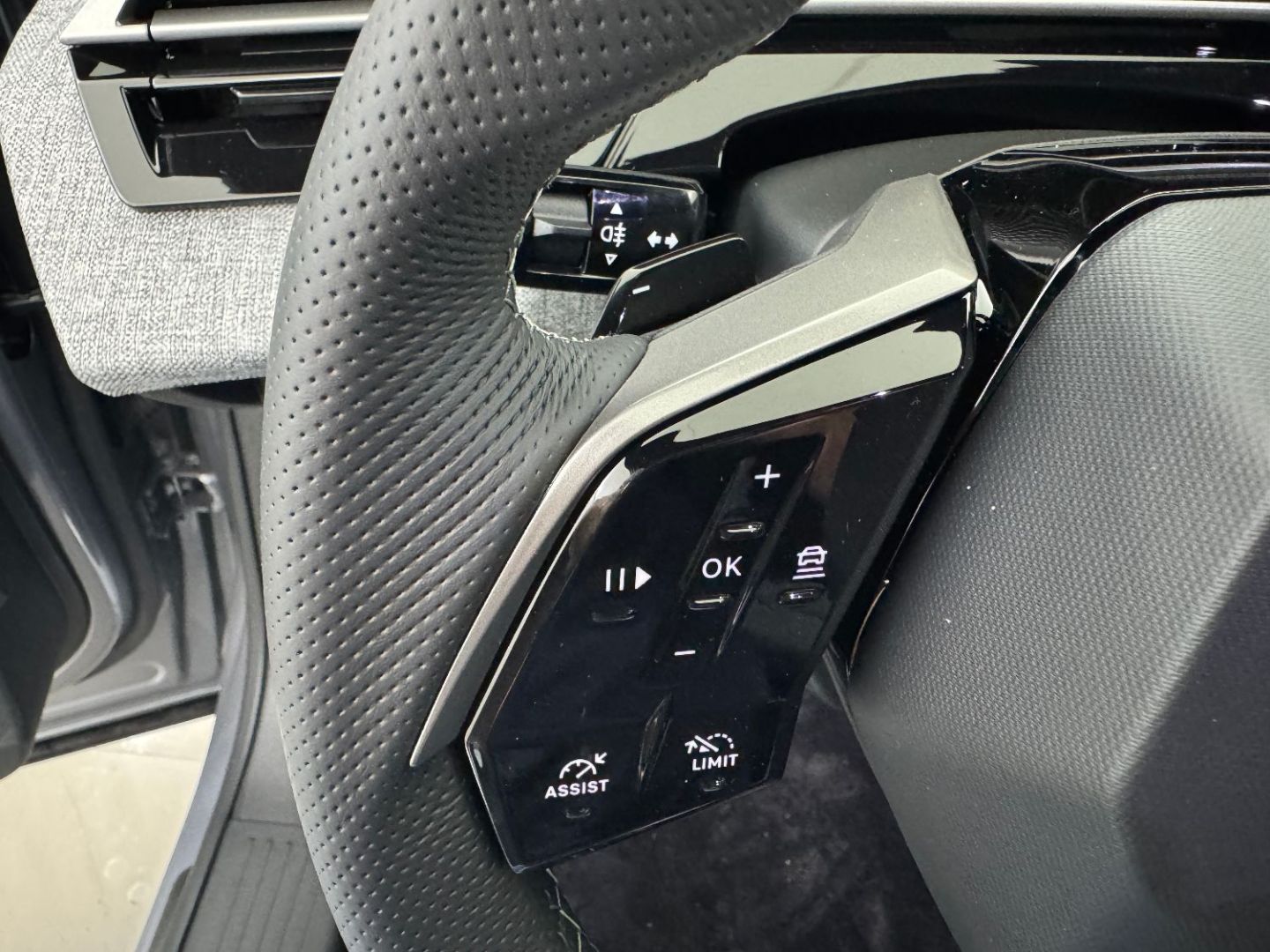 • Volant compact, cuir fleur lisse et perfore avec commandes integrees noir laque, decors cast iron, surpiqures iced clay, insert noir laque avec badge ‘GT’