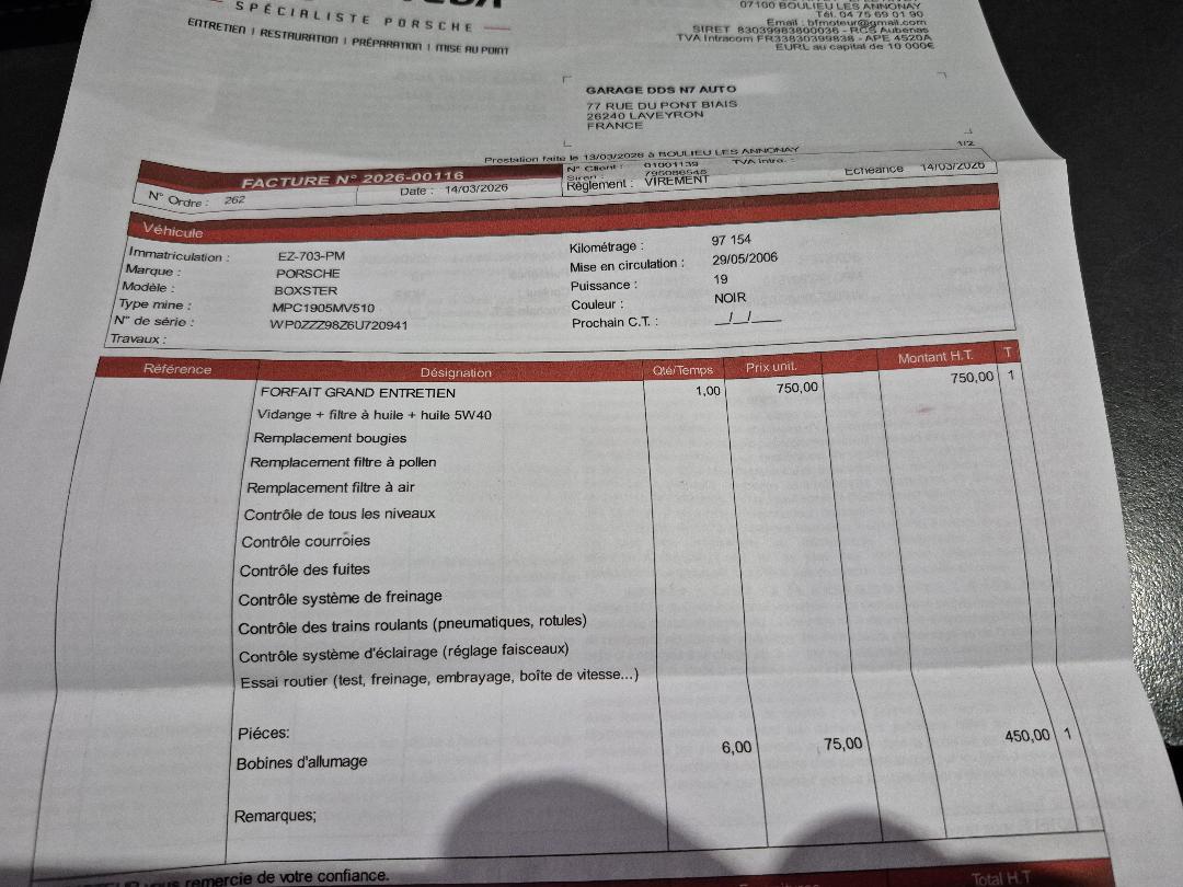 Sort de grosse revision chez specialiste porsche 1400 e vidange filtres bougies et bobines