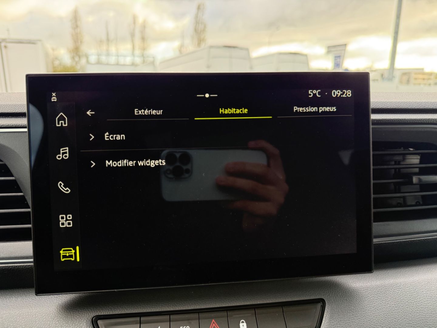 Planche de bord avec rangements ouverts