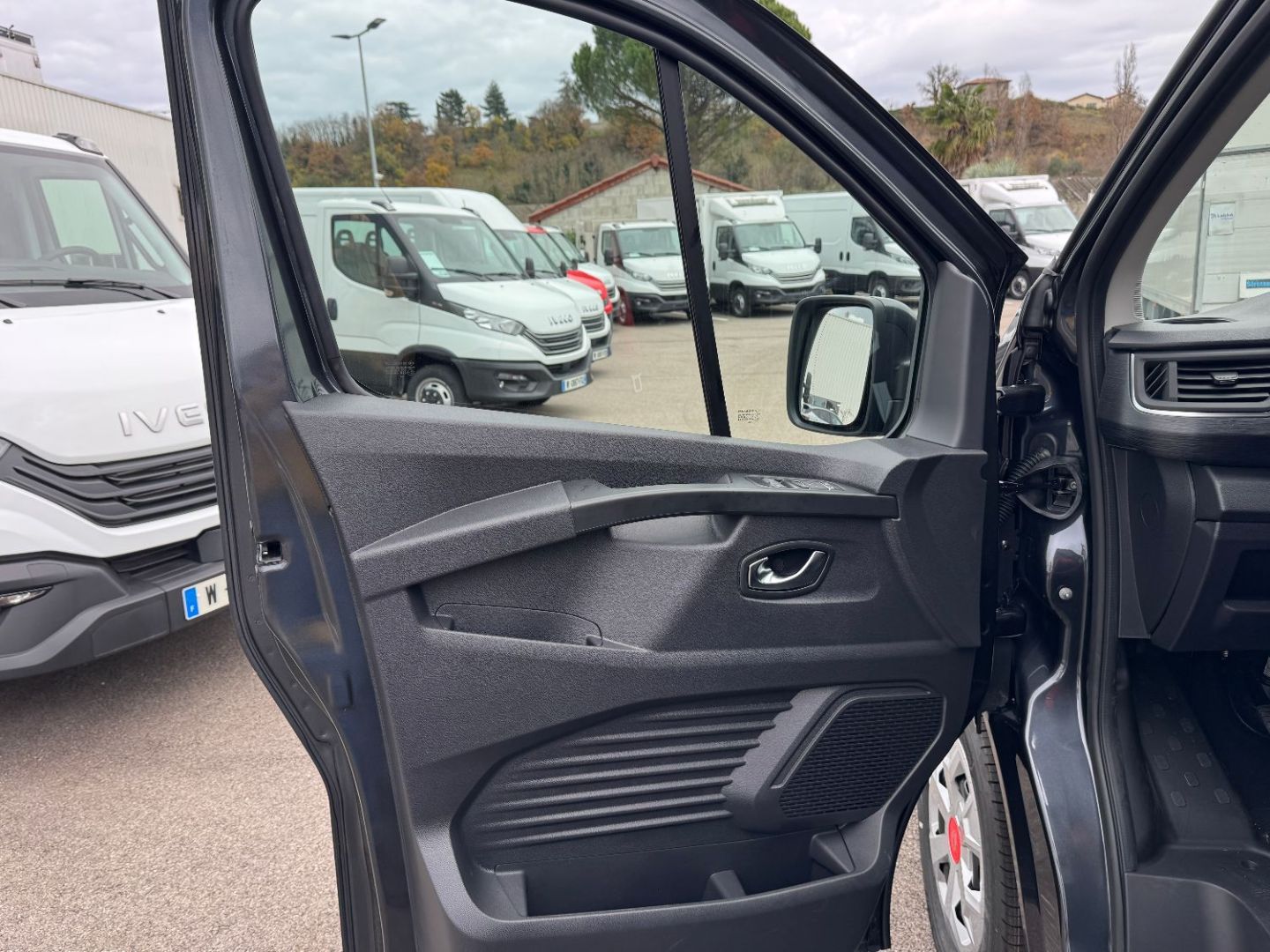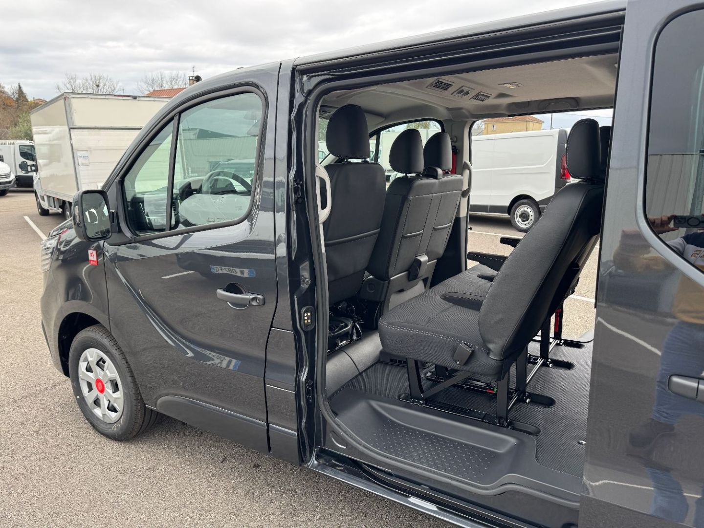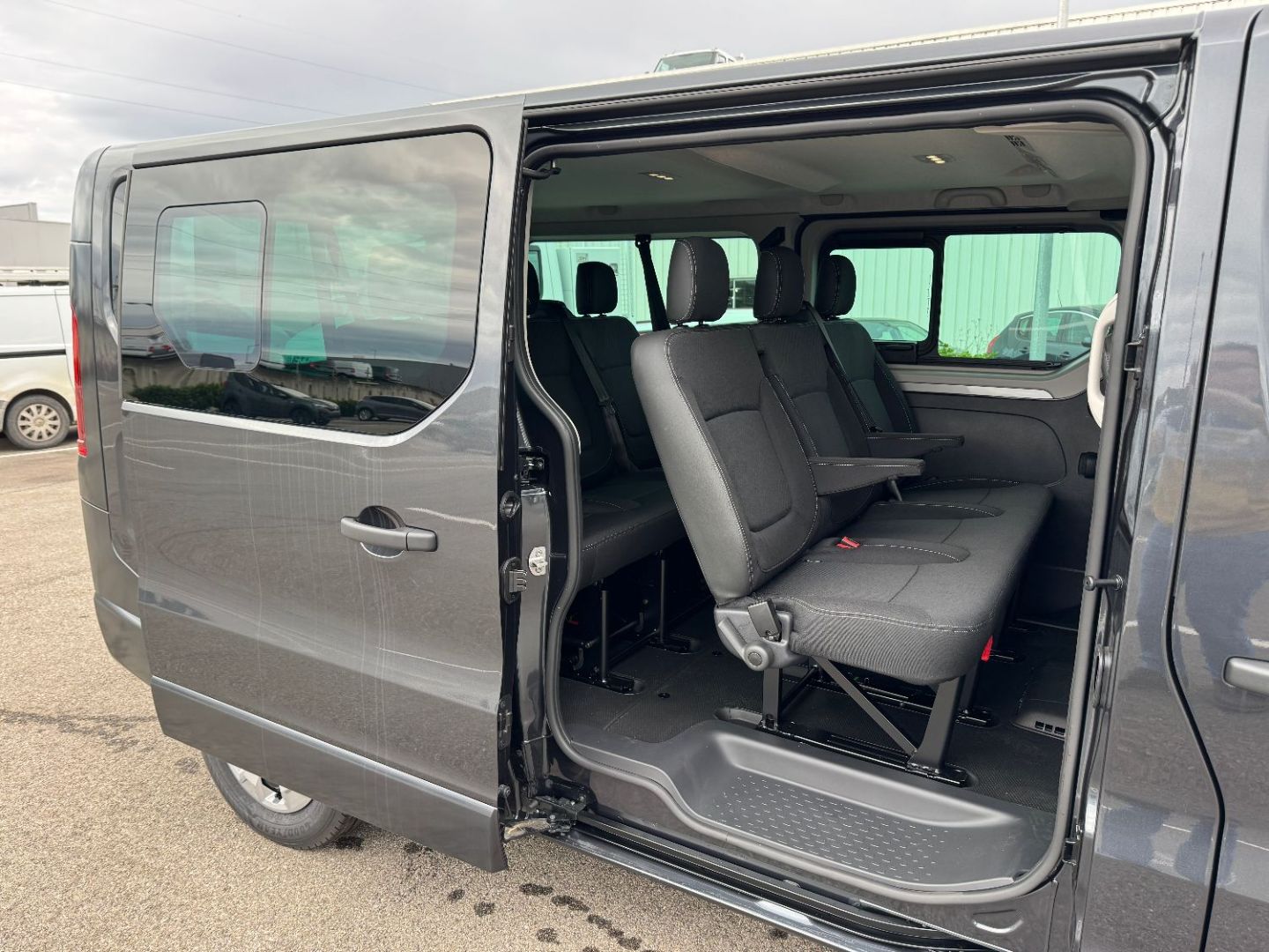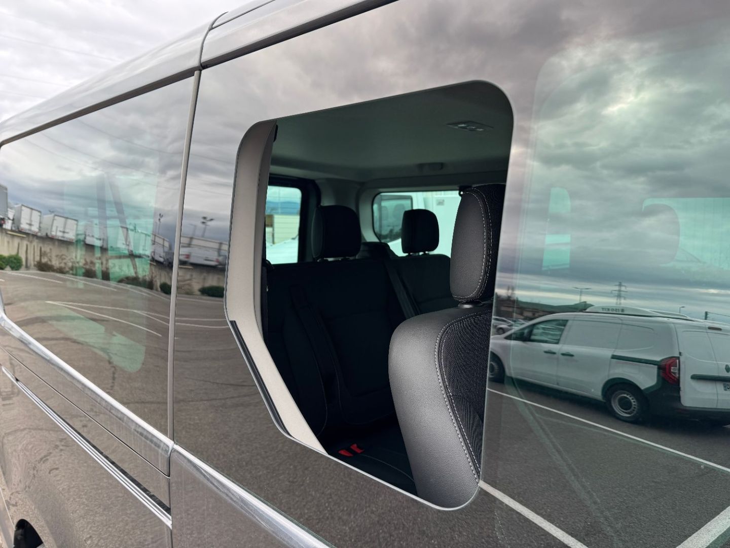 • Porte laterale gauche coulissante vitre ouvrante + banquette fixe avec rangement